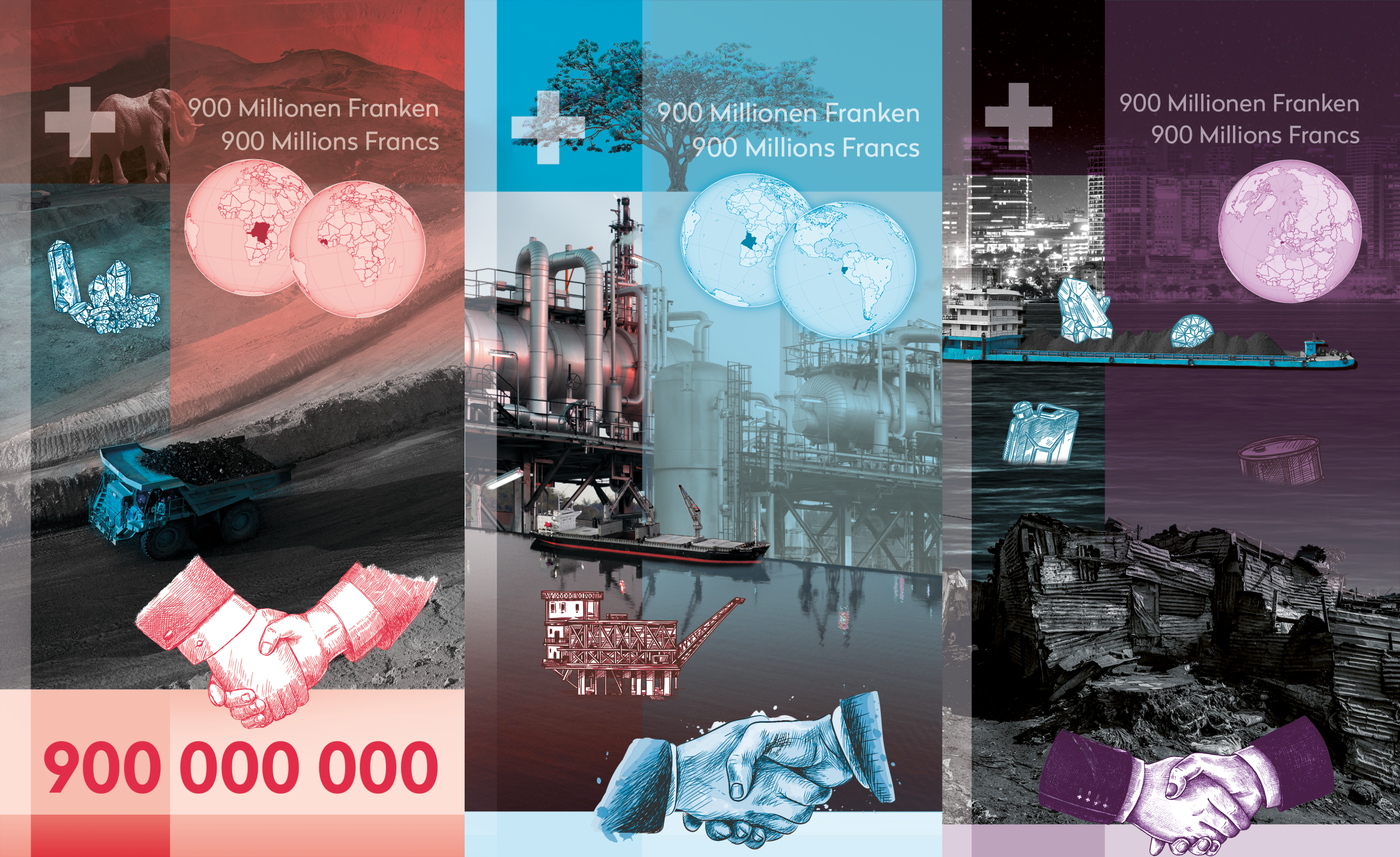 Die Schweiz bekommt bald neue Banknoten. Zu den sechs noch im Rennen befindlichen Konzepten kommt nun ein siebtes hinzu, auf der die Zahl von 900 Millionen Franken durch Ölplattform und Grossbagger aus der Rohstoffförderung umrahmt wird. Die politische Botschaft dieses Kampagnenflyers lautet «Kein Profit aus Korruption» und ist ein Appell für mehr Gerechtigkeit als neue Schweizer Währung. Konkret fordert die von Public Eye heute lancierte Petition die Rückgabe von illegalen Unternehmensgewinnen, die aus der Bestechung ausländischer Amtsträger resultieren, an die geschädigte Bevölkerung in einkommensschwachen Ländern. Denn bislang profitiert die Schweizer Staatskasse von diesen nach Strafentscheiden eingezogenen «Ersatzforderungen», die Geschädigten im Globalen Süden gehen leer aus.