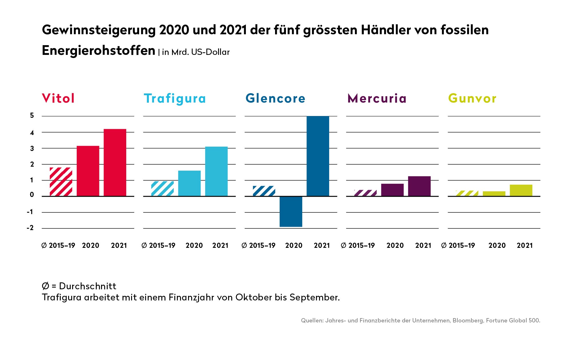 Nach der russischen Invasion war schnell klar, dass dies drastische Auswirkungen auf die Energie- und Rohstoffversorgung insbesondere von Europa haben würde. Während der Preis für die russische Erdölsorte Urals bei Kriegsbeginn stark einbrach, stieg er für anderes Rohöl massiv an. Spätestens seit dem EU-Beschluss, Kohle und Öl aus Russland zu sanktionieren sowie die Abhängigkeit von russischem Erdgas zu verringern, steigen auch die Preise auf dem Erdgasmarkt. Von hohen Preisen sowie der Volatilität der Preise profitieren Rohstofffirmen immer, und dies umso mehr, je massiver die Schwankungen. Vor dem Hintergrund des politischen Versagens bei der Energiekrise schiessen die Gewinne der Händler nur so in die Höhe.