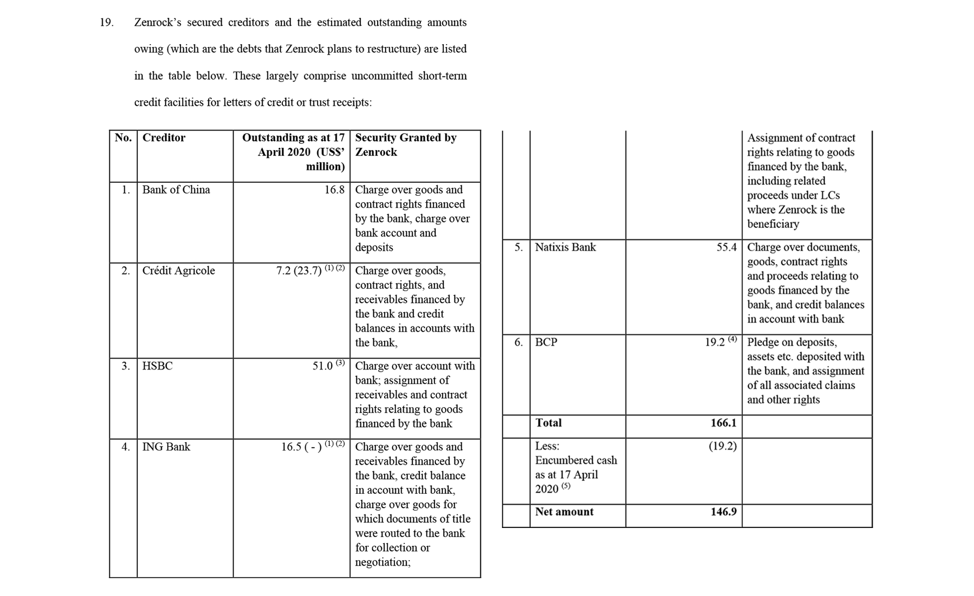 Neben der HSBC mit ihrem Engagement von 51 Millionen US-Dollar trifft der Konkurs von Singapur auch die BCP. Sie hatte ZenRock 19,2 Millionen US-Dollar geliehen. Der Betrag war am 27. April fällig, wurde jedoch nicht zurückgezahlt, wie aus der eidesstattlichen Erklärung (Affidavit) des ZenRock-Chefs vor dem Obersten Gerichtshof Singapurs vom 6. Mai hervorgeht, in die Public Eye Einsicht hatte. ZenRocks Schulden bei der Crédit Agricole könnten sich auf bis zu 23,7 Millionen US-Dollar belaufen, wenn das Unternehmen seinen Verpflichtungen nicht bis zum 5. Juni nachkommt.