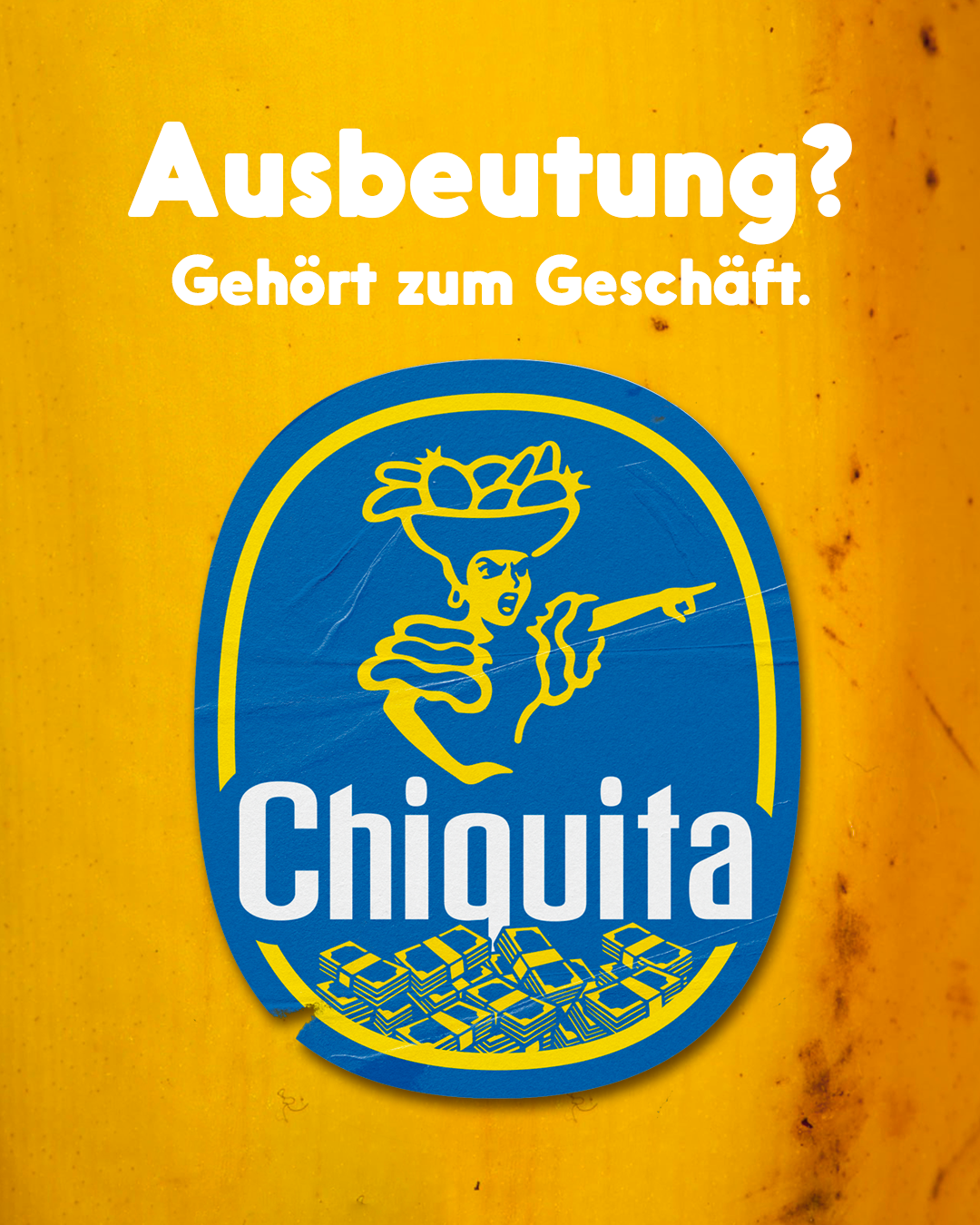 Die Visuals unserer Kampagne zeigen Miss Chiquita als das, was sie wirklich ist: das wenig verführerische Symbol eines Konzern, das sich auf Kosten derjenigen bereichert, die es schamlos ausbeutet.