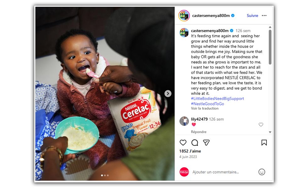 “When the fortification is combined with addictive and harmful sugars, the balance does not seem right.” For her, the findings highlighted by Public Eye “reflect a continuation of Nestle's long history of corporate disregard for the health of infants in Africa in the pursuit of profit.”