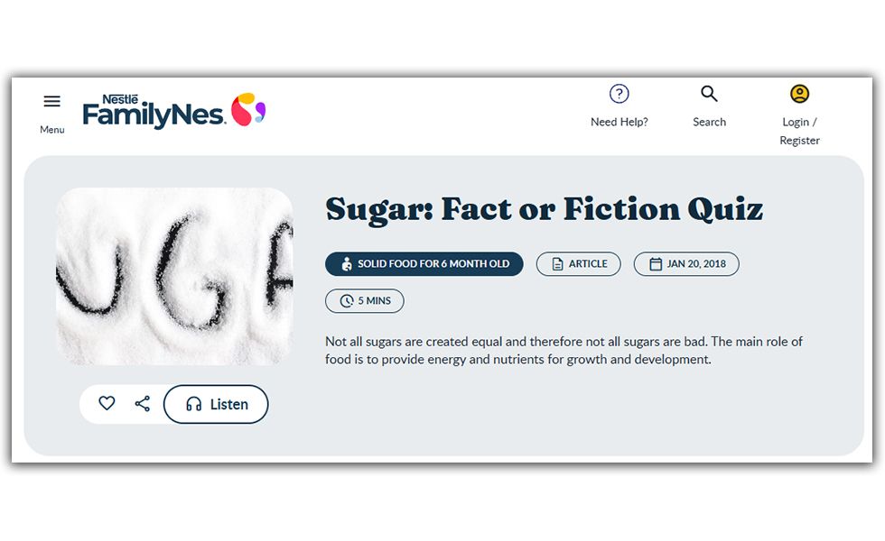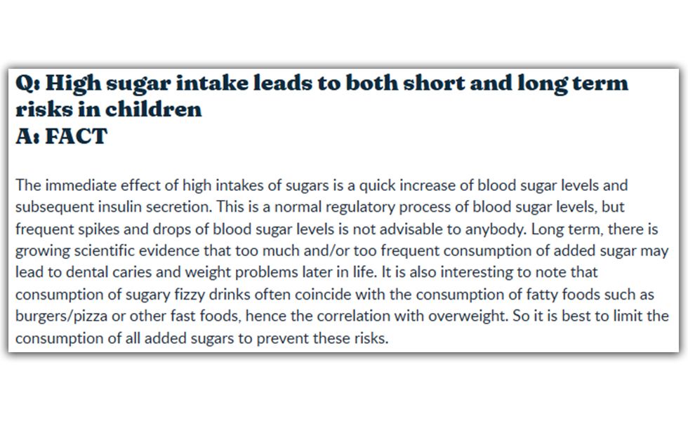 Nestlé is well aware of these risks. “Children can become accustomed to sweet foods” Nestlé writes on a website aimed at South African parents . “High sugar intake leads to short and long terms risks in children”, the company adds. “It is best to limit the consumption of all added sugars to prevent these risks.”