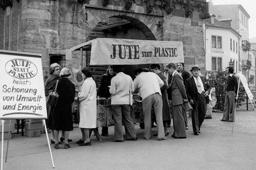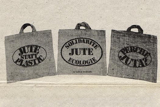 Der visionäre Geist der Erklärung von Bern zeigt sich auch beim Verkauf von handgefertigten Jutetaschen aus Bangladesch, „Zeichen der Solidarität mit den dortigen Kleinbauern und Handwerkergenossenschaften“. Mit über 250‘000 verkauften Exemplaren stehen die Jutetaschen auch für den Kampf gegen Plastik, das schon damals als „einer der grössten Verschwender und Verschmutzer unserer Zeit“ angesehen wird.