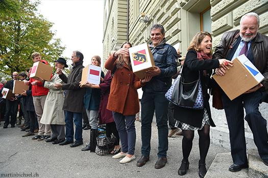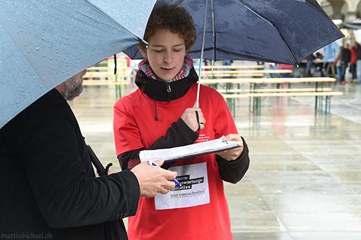 Um gegen die Allmacht der Konzerne anzukämpfen, gründet die EvB die Koalition „Recht ohne Grenzen“ mit. Die NGO-Koalition fordert mit einer von 135‘285 Personen unterschriebenen Petition die Regierung auf, verbindliche Regeln für Konzerne zur Wahrung von Menschenrechten und Umweltstandards zu verabschieden. Nach einem vielversprechenden Start verlaufen die Diskussionen im Parlament 2015 auf Druck der Wirtschaftslobby im Sand. Die Koalition beschliesst deshalb, eine Initiative zu lancieren und Goliath mit der Unterstützung der Stimmbevölkerung zu bezwingen.