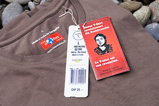 Die nachhaltige Produktion von Kleidung ist durchaus möglich. Das beweist die EvB mit einem vorbildlich hergestellten T-Shirt. Vom Baumwollfeld in Burkina Faso bis in die Näherei in Indien werden alle Produktionsschritte dieses Kleidungsstücks mit dem Abbild von Sasi Rekha, einer der Frauen, die zu seiner Herstellung beigetragen haben, dokumentiert. In unserem Firmenvergleich wird ausserdem deutlich, dass bezüglich Transparenz und Achtung der Arbeitnehmerrechte enorme Verbesserungen nötig sind.