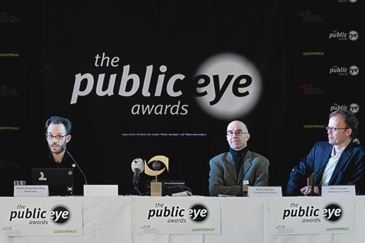 Um den Protesten gegen das WEF den Wind aus den Segeln zu nehmen, beginnt sich dieses um mehr Öffentlichkeit zu bemühen. Die EvB reagiert darauf mit der Gründung der Public Eye Awards, einer Verleihung von Schmähpreisen, welche die mediale Aufmerksamkeit auf Menschenrechtsverletzungen und Umweltschäden durch Multis lenken soll. Diese Strategie des „naming and shaming“ gibt den Opfern eine Stimme und unterstützt zivilgesellschaftliche Kampagnen aus aller Welt. 2015 finden die letzten Public Eye Awards statt – die EvB konzentriert sich ab dann darauf, ihre Forderungen von Davos nach Bern auf die politische Bühne zu tragen.