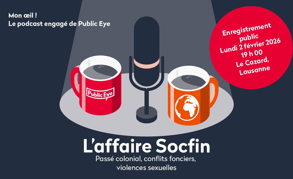 Lors de l’enregistrement public d’un épisode du podcast «Mon œil! Le podcast engagé de Public Eye» le 2 février 2026 à 19 heures au Cazard à Lausanne, nous aborderons en profondeur les questions liées aux structures coloniales, à l’exploitation sexuelle et à la responsabilité des multinationales.