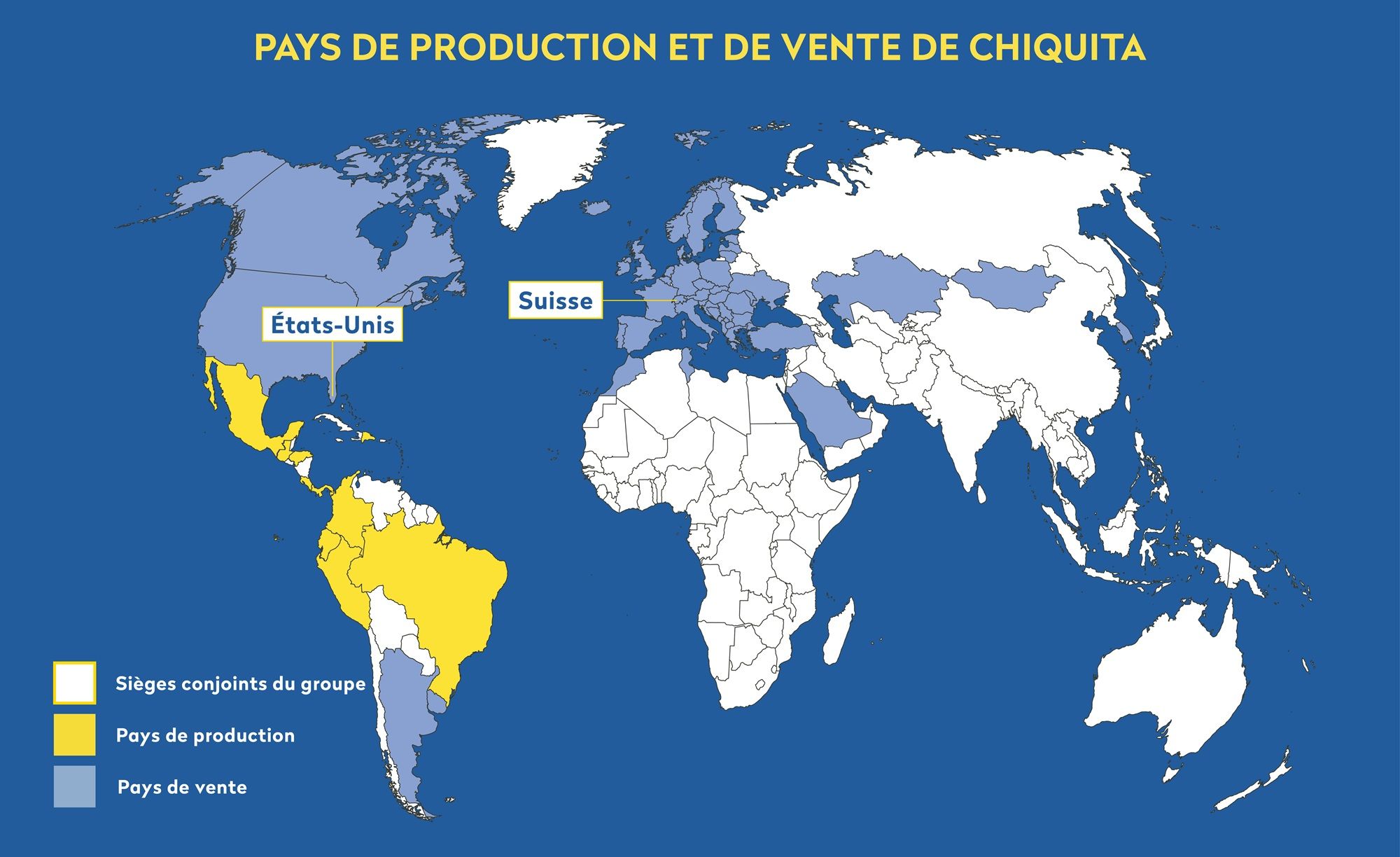 Installée en Suisse depuis 2008, la célèbre multinationale Chiquita pilote ses opérations mondiales depuis son siège d’Etoy, dans le canton de Vaud. Pour approvisionner près de 50 pays, l’entreprise s’appuie sur une chaîne de valeur entièrement intégrée. Elle exploite elle-même quelque 70 plantations en Amérique centrale (Costa Rica, Panama, Honduras et Guatemala) et en Équateur. Grâce à sa propre flotte de porte-conteneurs et à ses infrastructures portuaires privées, elle approvisionne ensuite ses entrepôts, avant de desservir les supermarchés via d’importants réseaux de distribution en Europe et en Amérique du Nord.